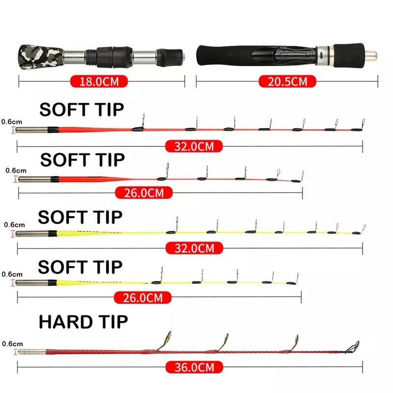 Chiều dài: Cây câu trên băng thường ngắn hơn các cây câu thông thường, thường dài từ 18 đến 48 inch.Chiều dài ngắn hơn cho phép xử lý dễ dàng hơn trong không gian hạn chế của nơi trú ẩn đánh cá trên băng.